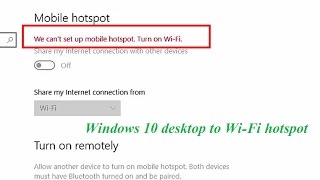 - How to fix We can't set up mobile hotspot. Turn on Wi-Fi Windows 10 PC Mobile hotspot settings